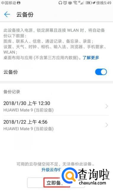 弹出的界面,我们点击立即备份就可以了。还是比较简单的,相信大家现在都会了。