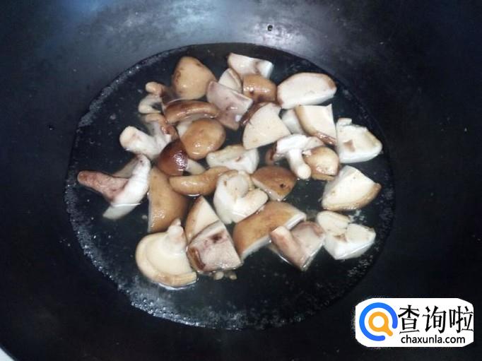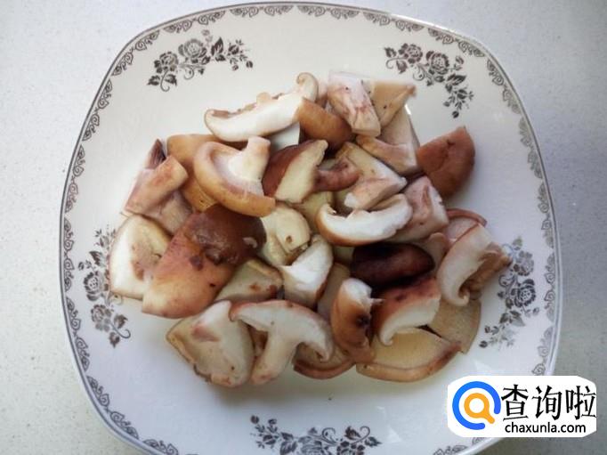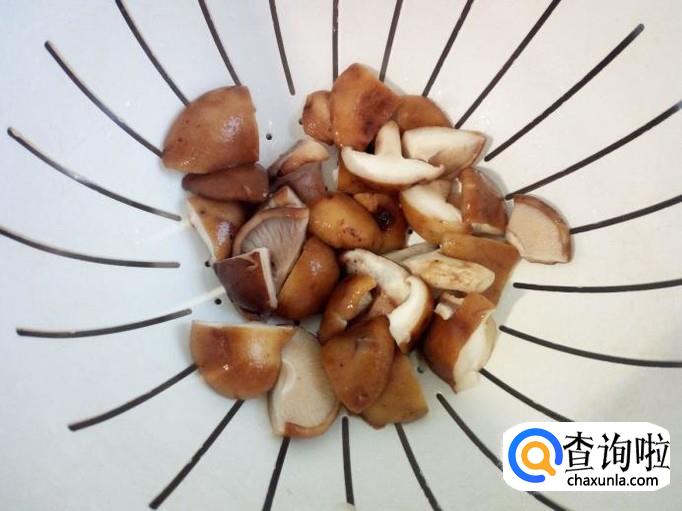 香菇去根,用水清洗干净,控干水分。大的香菇切成对半,小的香菇切成四半。