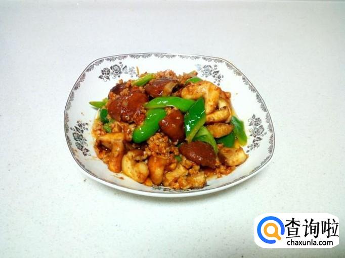 肉末 150克 ,香菇 150克 ,青尖椒 1个 ,豆酱 1匙儿。