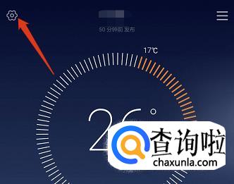 进入天气系统页面后,点击左上方的“设置”齿轮。