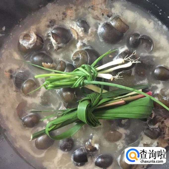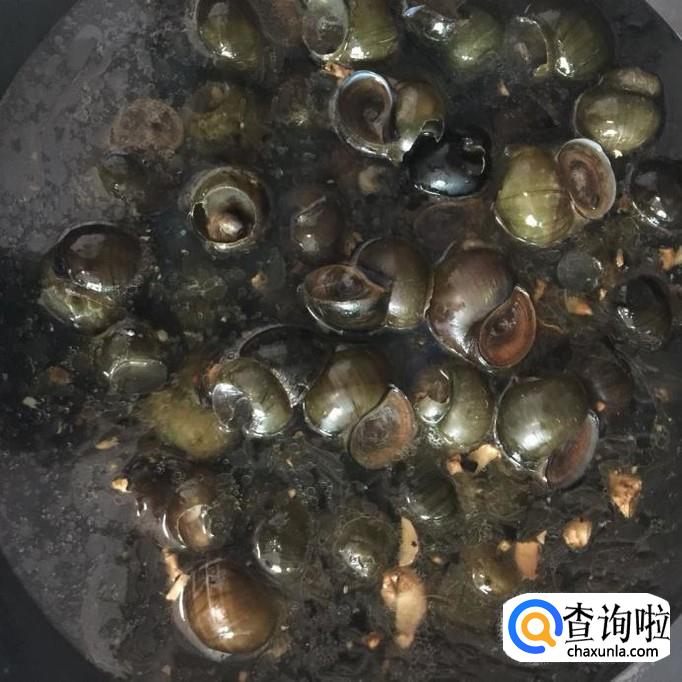 然后把田螺剪去尾部,清洗干净,倒入锅中,用大火煮五分钟,如下图所示。大家在处理田螺之前,可以用茶水浸泡田螺一天一夜,这样能够让田螺更好的吐净肚子中的一些泥沙。另外,田螺的表面是比较脏的,大家可以用洗衣服的刷子来刷洗田螺的表面。