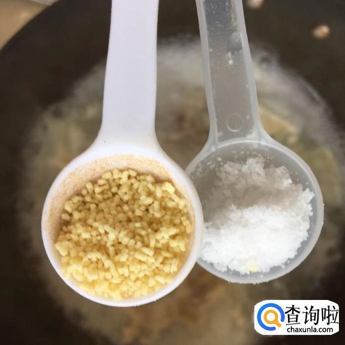 接着往锅中加入适量的盐巴和味精,小煮片刻就可以出锅了。