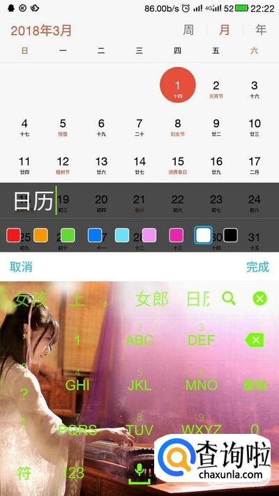 输入想要的文字,在这里我们输入“日历”,然后点击确定。
