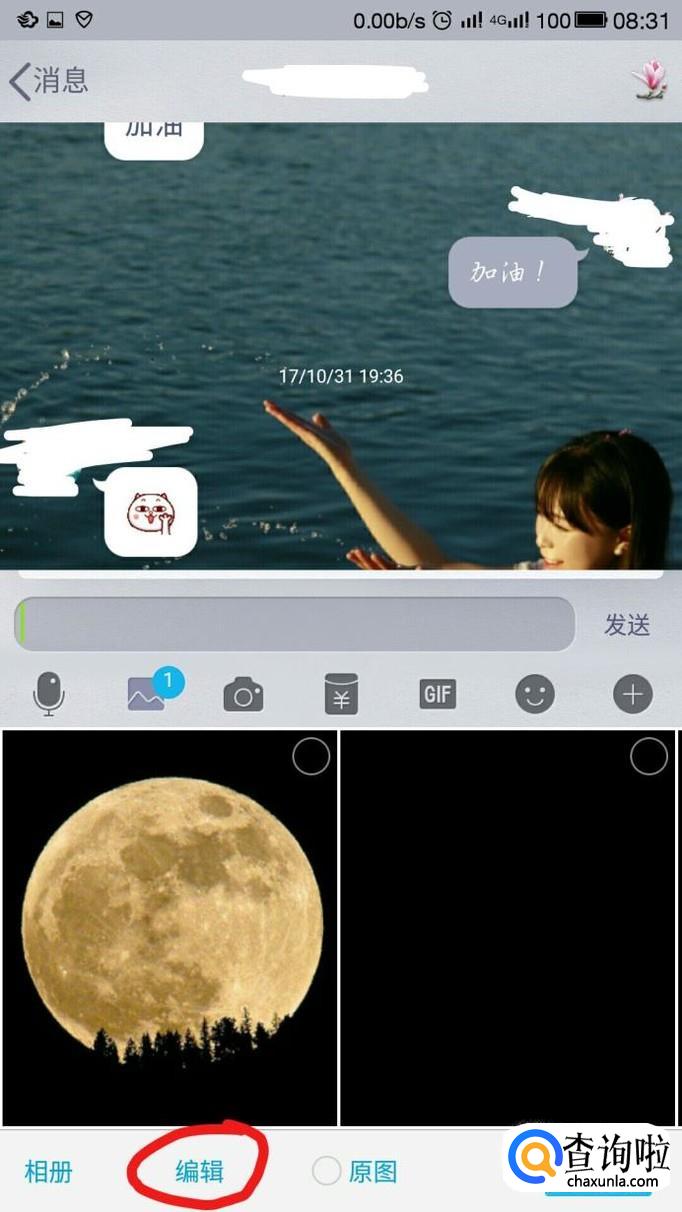 点击下面的“图片”,选择想要发送并编辑的照片,选中。