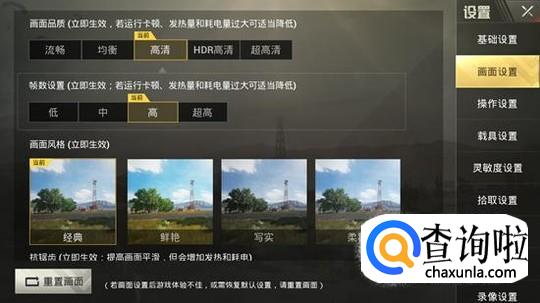 一般iPhone可以画面品质和帧数设置我们都可以选择高清和高的选项,因为ios系统运行刺激战场都很流畅,但是如果你想节省流量,可以将画面品质和帧数调低。