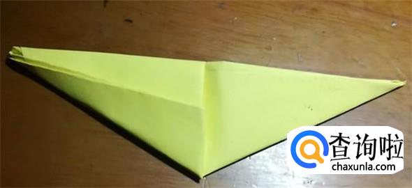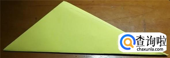 将上一步折好的钝角三角形,最短的边朝下摆放,钝角朝左,左手拿着三角形的钝角,参照下图,右手将最下面的角,以钝角的顶点为折点往左(卷)折。