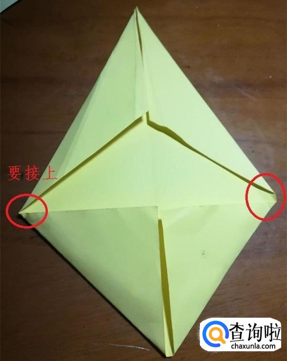 上面的2个角,和下面的2个角折好后的效果图如下,要确保上面和下面的折痕正好接上、对齐。