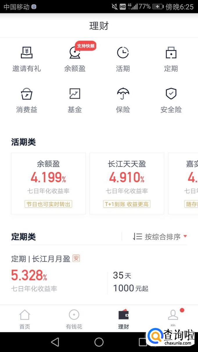 百度钱包还可以用来理财,有活期和定期理财,让你更注重自己的财物规划,如下图。