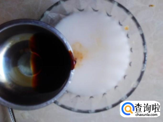 再用1小勺的淀粉加小半碗水、1勺生抽搅拌均匀。