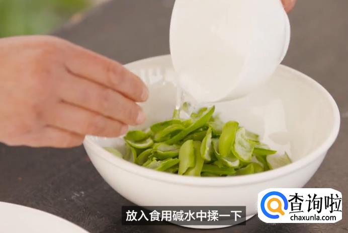 外皮放入使用碱水中揉一下,放个两三分钟,然后洗净沥干。