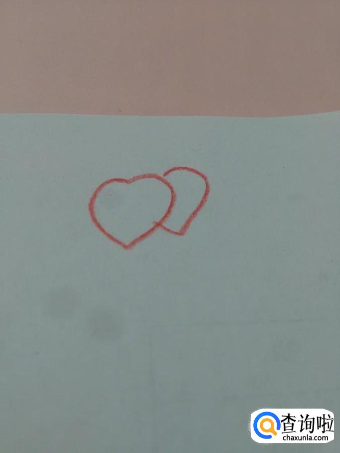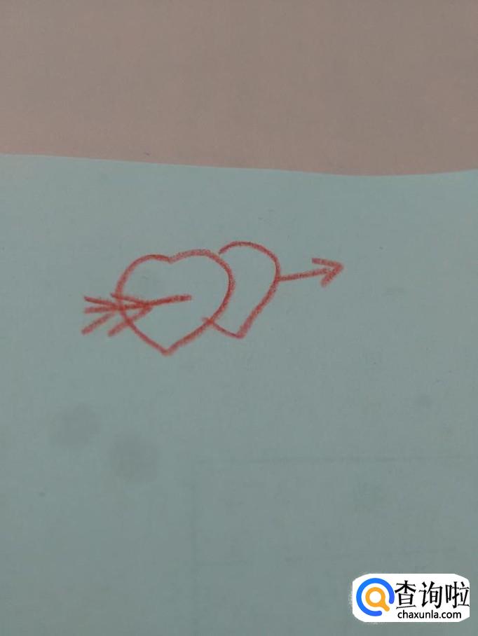 在两个桃心中间,画一条直线,左端画几条小折线,表示箭尾,右边画一条折线,表示箭头。