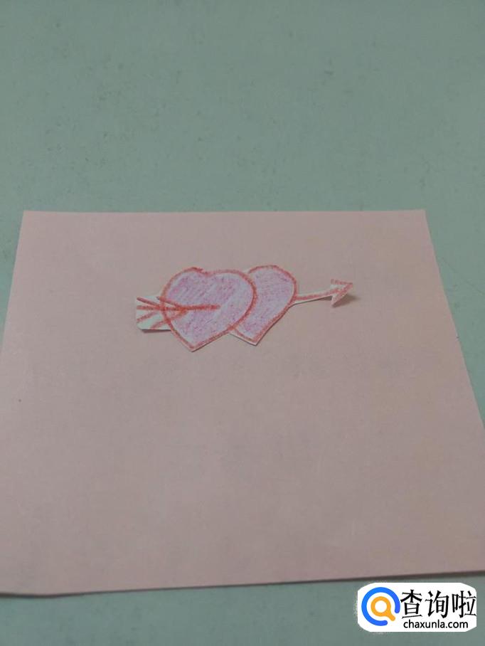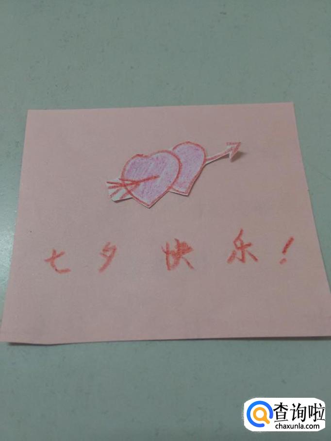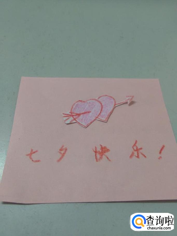 再用红笔在桃心下面写上七夕快乐几个字,七夕贺卡就做完了。