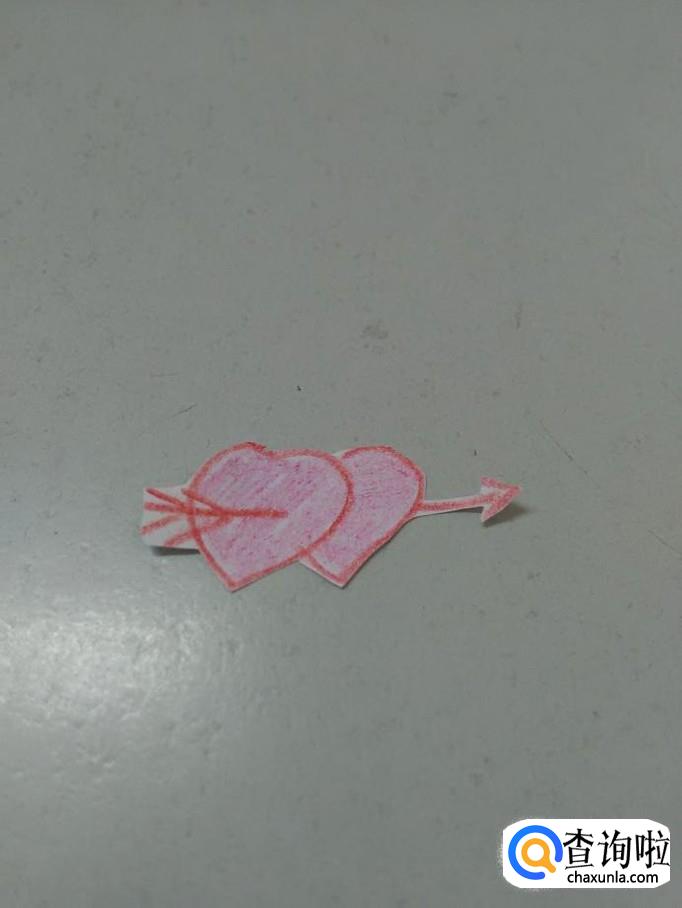 用剪刀沿着画好的轮廓线,剪两个桃心和箭剪下来。