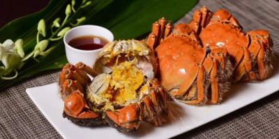阳澄湖大闸蟹,江苏省苏州市特产,中国国家地理标志产品。阳澄湖大闸蟹又名金爪蟹。产于苏州阳澄湖。蟹身不沾泥,俗称清水大闸蟹,体大膘肥,青壳白肚,金爪黄毛,肉质膏腻。农历9月的雌蟹、10月的雄蟹,性腺发育最佳。煮熟凝结,雌者成金黄色,雄者如白玉状,滋味鲜美。