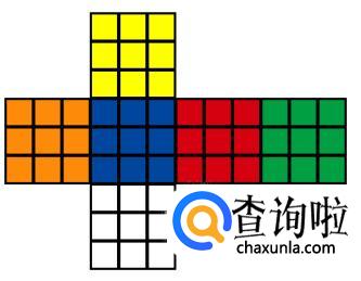 还原顶层十字完成第三步后,接下来就是将顶层的十字还原,完成后如下图所示。口诀是:前加,右加,上加,右减,上减,前减。