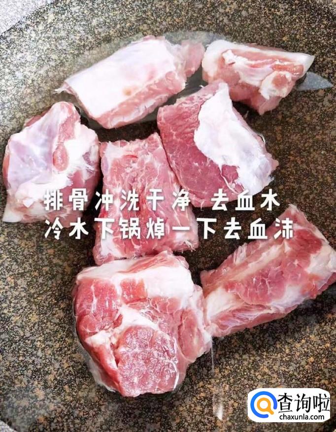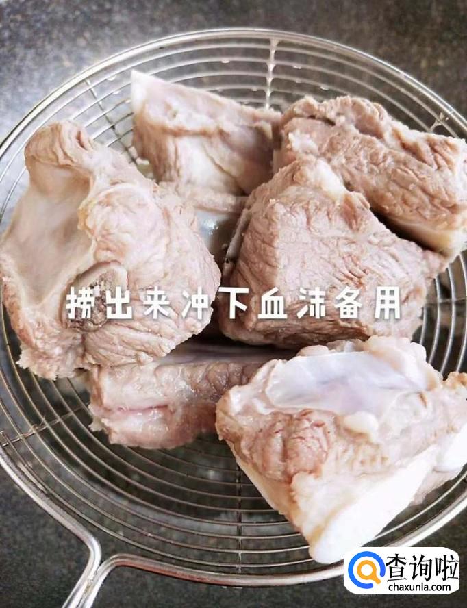 接着把抄好水的排骨,捞出来冲一下血沫备用,如下图所示。