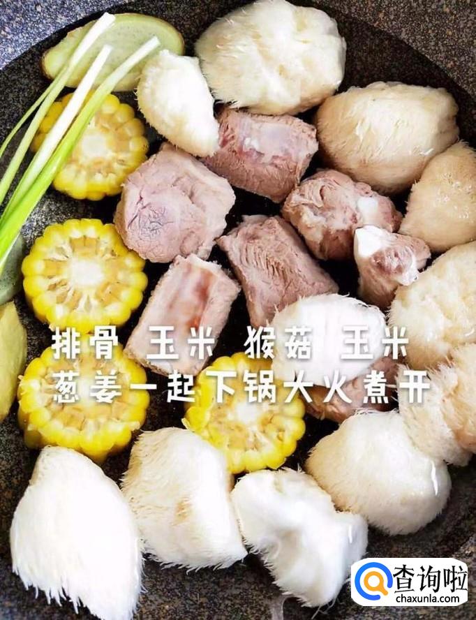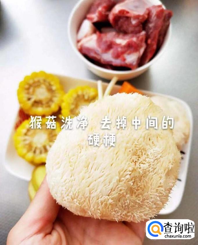 食材:新鲜猴头菇,排骨,玉米,葱姜,胡萝卜,排骨。