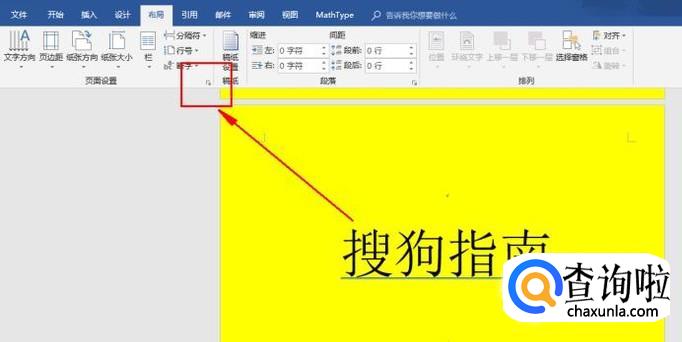 返回页面,点击“布局”,点击倒三角进行页面设置。