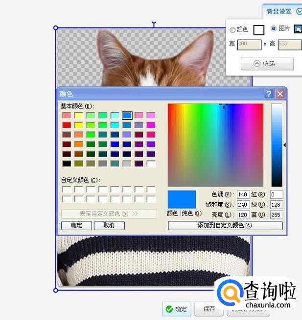 然后点击上方的背景设置,在背景设置中点击颜色,你就可以选择自己想要的颜色,这里我们选蓝色,然后点击确定。