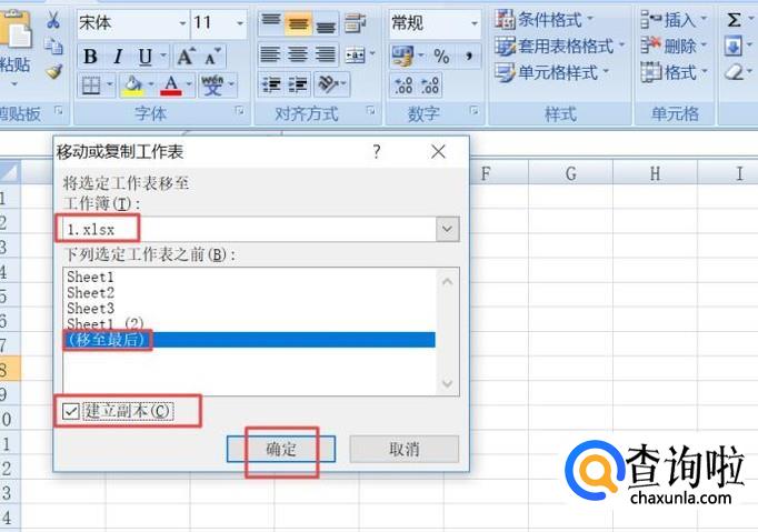 然后选中1文档,之后我们点击移动到最后,然后我们点击建立副本,之后我们点击确定;