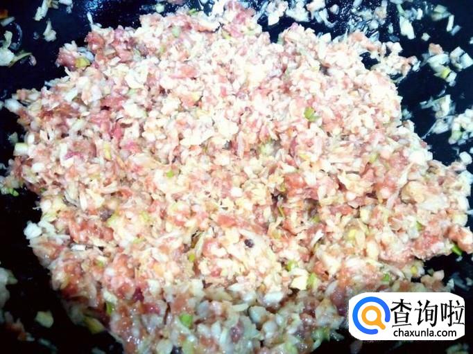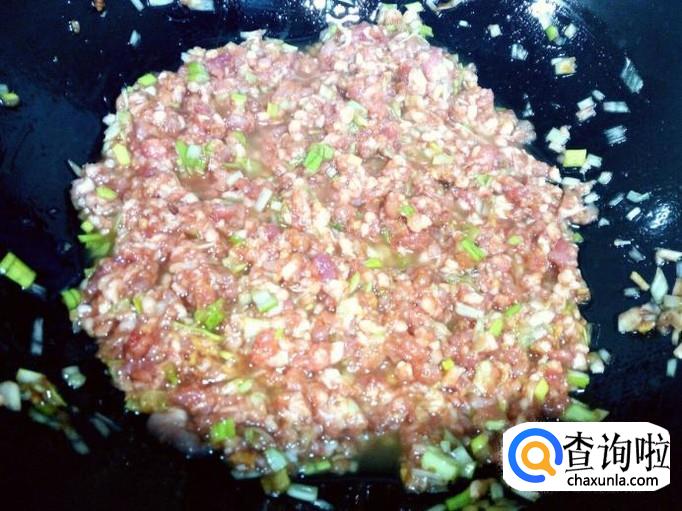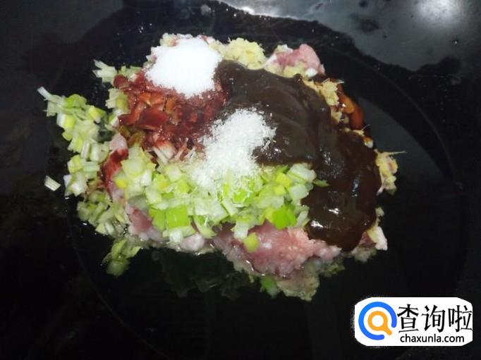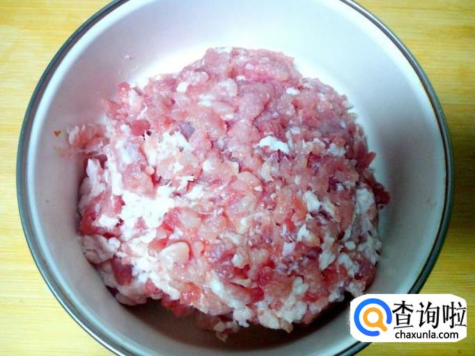 猪肉切成碎末,也可以购买现成的肉馅,我用的是购买现成的肉馅。