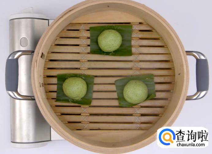 之后起锅烧水,当水烧开之后,将青团放入蒸笼。