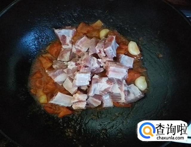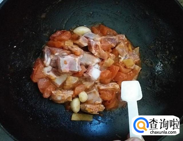 倒入小排加入适量的盐进行调味翻炒