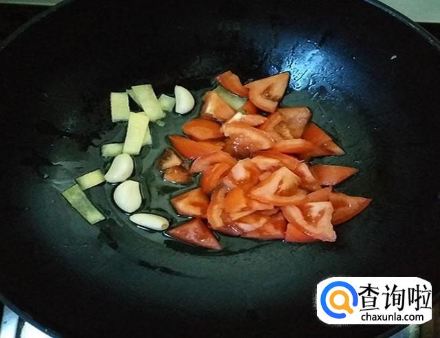 锅中倒入适量植物油,加入葱姜蒜西红柿煸炒