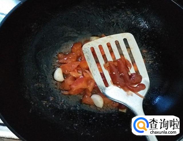 西红柿炒出汁加入番茄酱