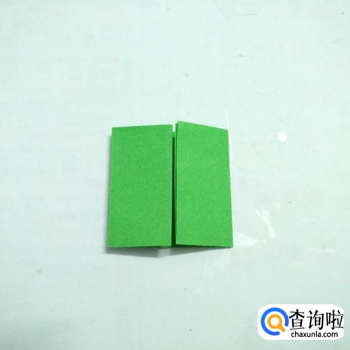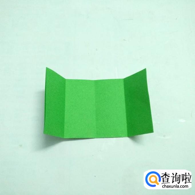 将左右两侧折向中心线并打开,使长方形分成了四等份。