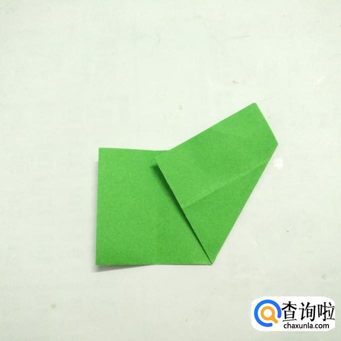 以底边中心点为轴,将折纸的右侧折向左侧的二分之一折痕处。