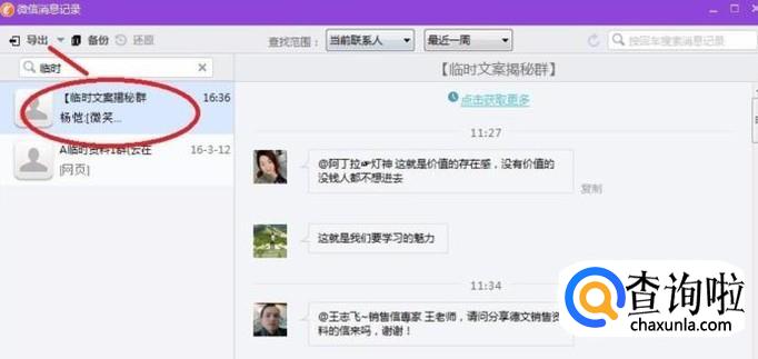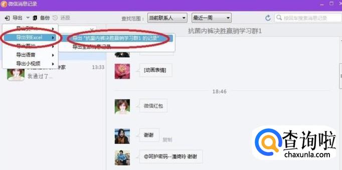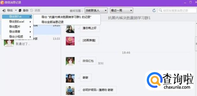 接下来在弹出的第二个对话框中选择“导出“抗菌内裤决胜赢销学习群1的记录””(即你自己所需要导出的群语音)