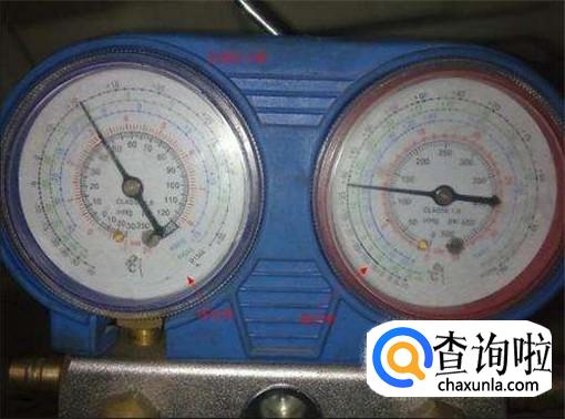 我们先来了解一下汽车的空调压力表,一般红色代表高压,另一个代表低压,压力表上分别有两个刻度和数字。