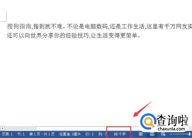 打开我们的word文件,然后在下面的状态里看到此时文字的总字数如图所示: