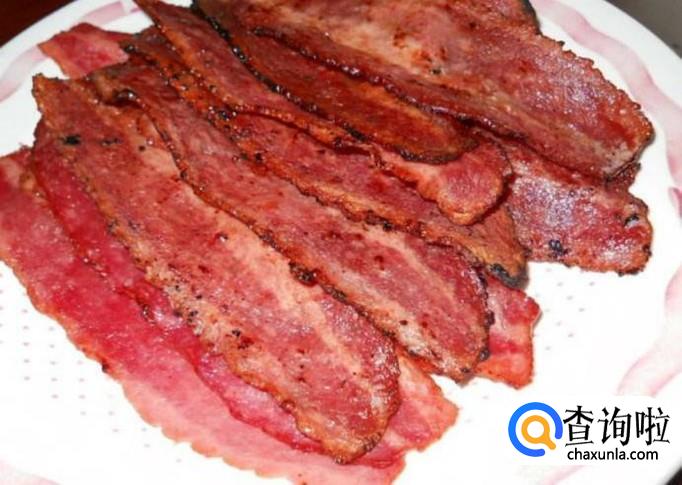 起锅烧油,放入培根煎至金黄色备用。