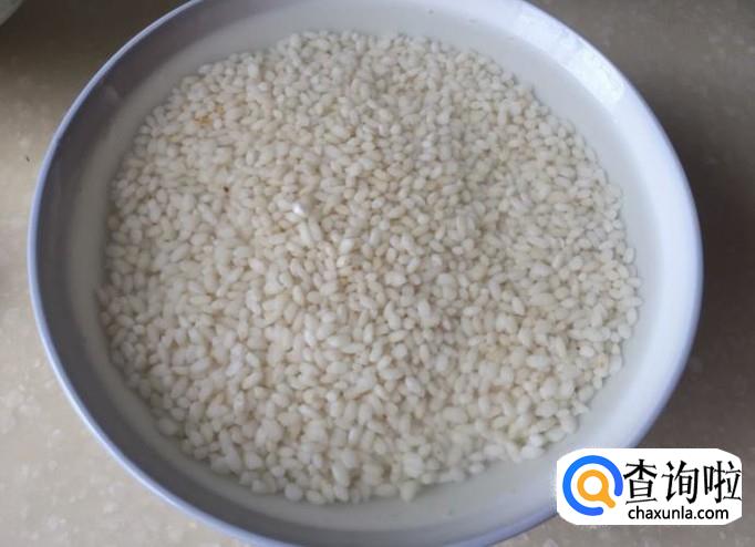 将糯米放入碗中,倒入清水,浸泡六个小时左右。