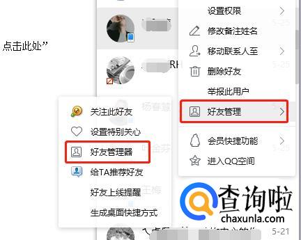 登陆QQ,找到消息那一页,随便点击一个好友右键找到好友管理,在找并点击好友管理器,如下图。