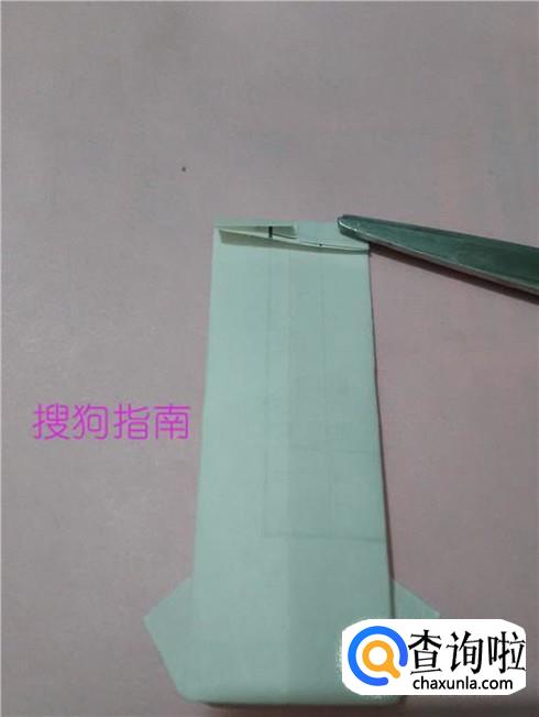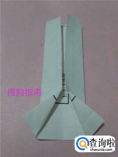 再把纸反过来,左右两个角向中间折一小段儿,折成领子。