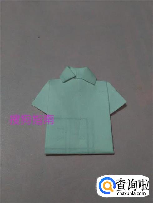 将下面的边向上折,折进领子下面,衬衫就折好了。