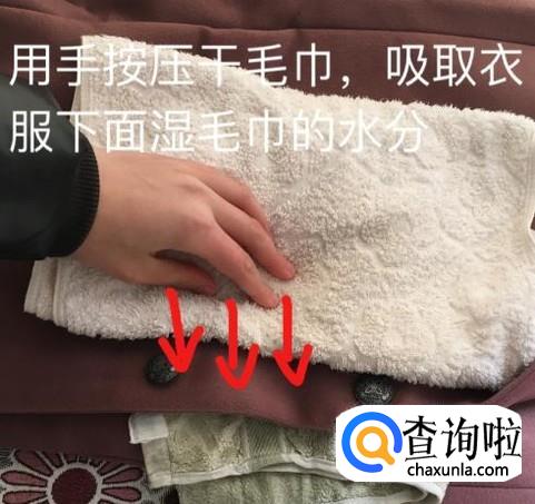 如果毛呢大衣染上水性污渍,可以准备一条湿毛巾放在毛呢大衣底部,然后用干毛巾在毛呢大衣的污渍上面吸水,污渍会随着水一起被吸出来。