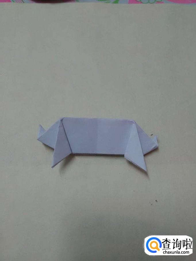 把中间的两个角往下折,折成小猪的腿。