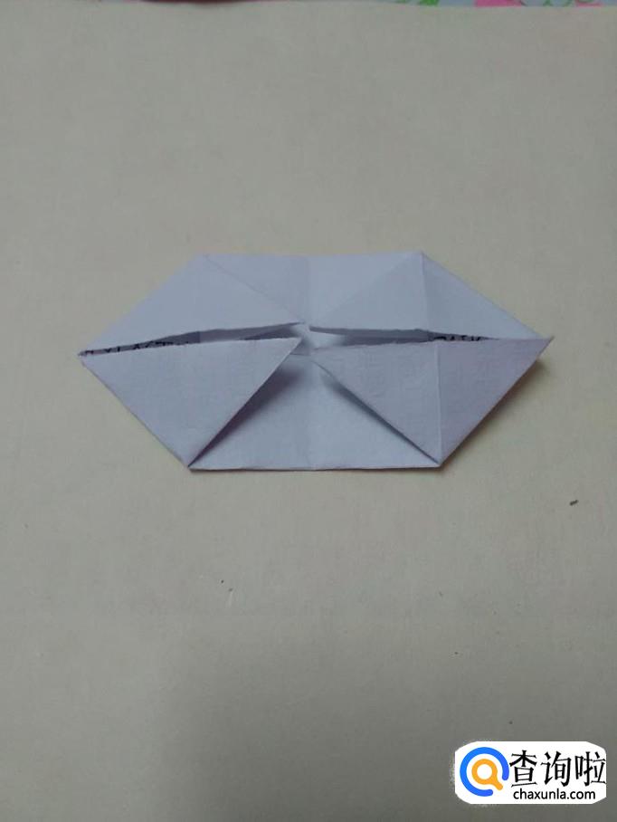 把两侧的小角从内侧往上翻,左面翻成猪嘴,右面翻成猪的尾巴。