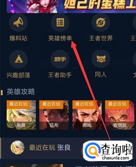 进入之后,点击“英雄榜单”,进入下一页面,如图所示。