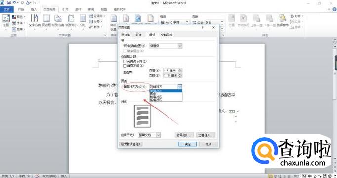 就可以看到“页面垂直对齐方式”,选择自己需要的对齐方式,点击确定即可。