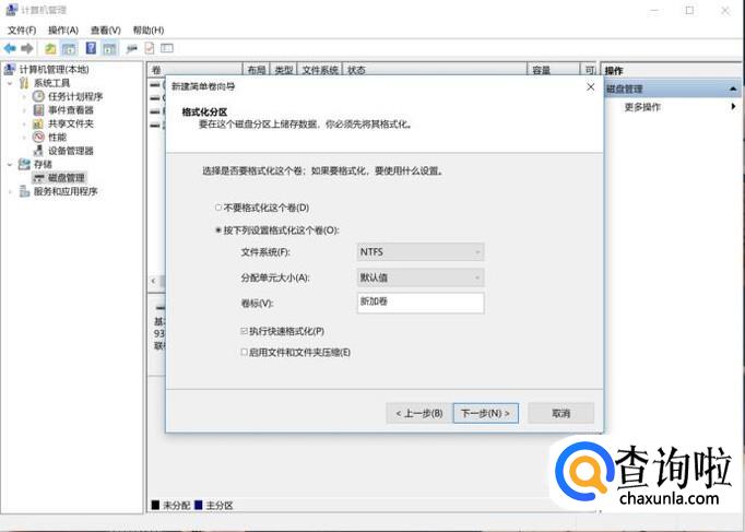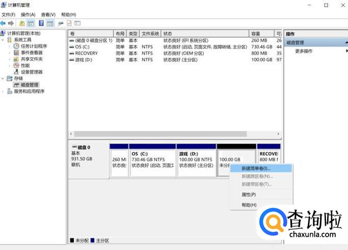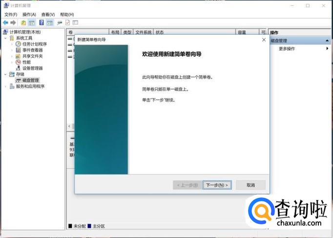 在新盘中单击右键,选择“新建简单卷”