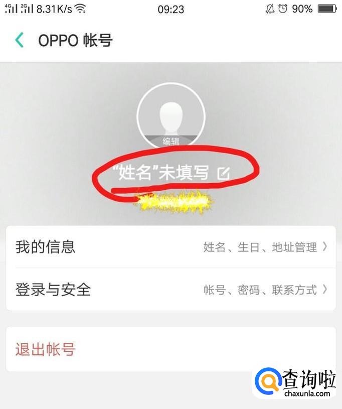 进入到账号信息界面,然后就可以看到设置OPPO账户姓名,如下图界面;