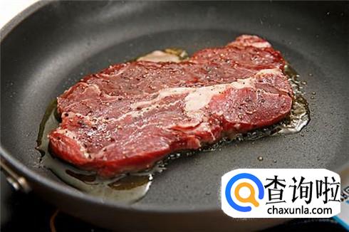 用平底锅或者电饼铛都可以牛排的,肉腌好之后,锅里加一点点油,不用多了,用刷子刷一点就行了,烧热之后把牛排放进去煎。