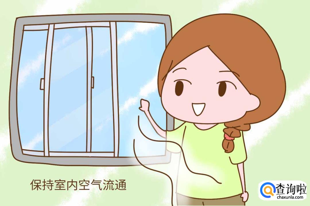 保持室内空气的流通,避免到封闭、空气不流通的公众场所和人多集中地方,必要时请佩戴口罩。咳嗽和打喷嚏时使用纸巾或屈肘遮掩口鼻,防止飞沫传播。