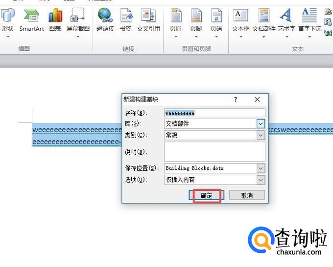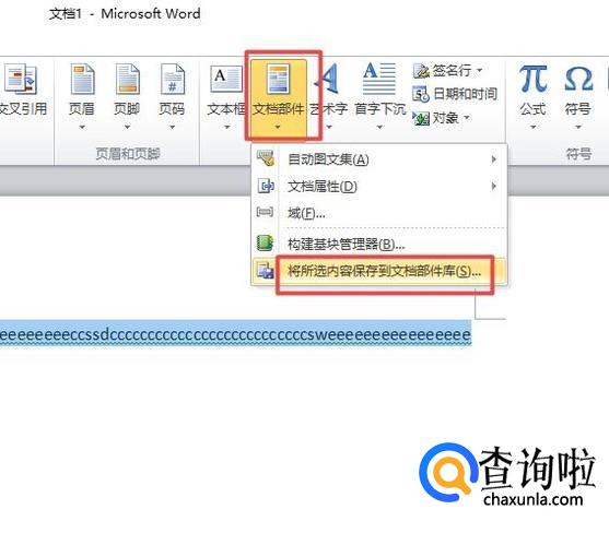 然后我们点击文档部件,弹出的界面,我们点击将所选文档内容保存到文档部件库;