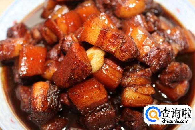 等到红烧肉已变红,汤汁熬成棕红色时,即可出锅,装盘。